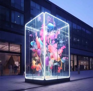 Firstly, the transparency of flexible transparent screens allows them to be installed on glass curtain walls, shop windows, or stage backdrops, enabling see-through display effects. The audience can see the scenery behind the screen while the screen itself plays images or videos, creating a creative overlay visual effect. This feature is particularly prominent in shopping mall advertisements, exhibition displays, and stage design.